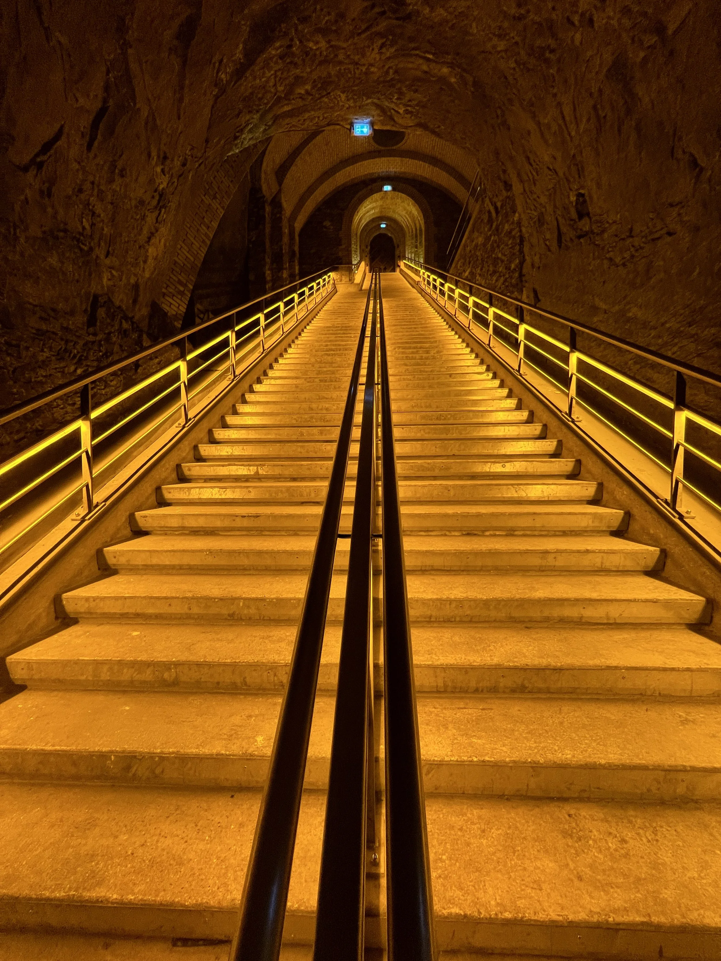 Hands down, this goes to the Veuve Clicquot tour. It’s located on the edge of Reims, outside the tourist hub, but walkable from our Airbnb. The building and grounds are lovely. We checked in and were directed to a very posh waiting area. Our guide was great, and we got to go into the crayeres (english translation: chalk pit). They’re underground caves, originally dug out when harvesting limestone to use in construction. They were also the spot where citizens of Reims took shelter in WWI and listed as a UNESCO World Heritage site. Veuve acquired them in the early 1900s, and according to our guide, the crayeres have the ideal environment for producing champagne. We also learned all about the woman who effectively made Veuve what it is today. Turns out Veuve Clicquot means ‘Widow Clicquot’. She took over the business in her late 20s after her husband passed away. The tour also comes with a glass of bubbles at the end, which we sipped in a tasting room. It was a nice day, so we purchased one more glass each from a cute Airstream trailer and drank them on the sunny patio!